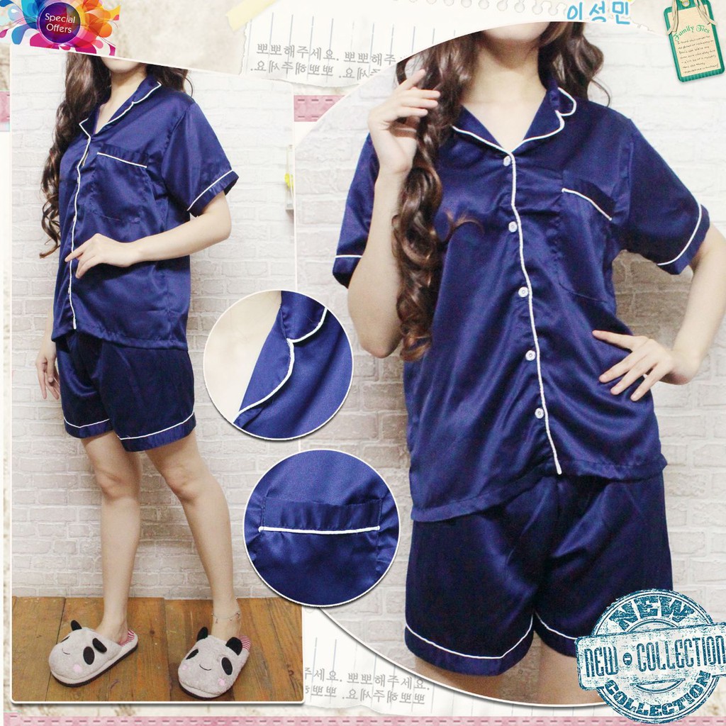 Pp Satin Piyama Polos Celana Pendek Baju Tidur Pajamas Wanita Dewasa