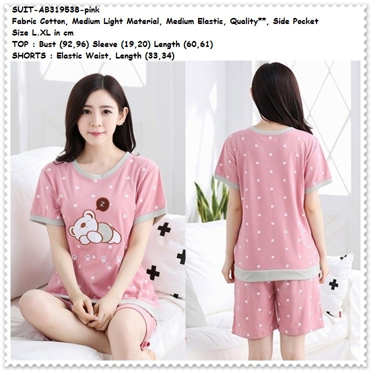Setelan Baju Tidur Celana Pendek Piyama Dewasa Katun Korea Import Teddy Bear Pakaian Wanita Pink 2 Shopee Indonesia